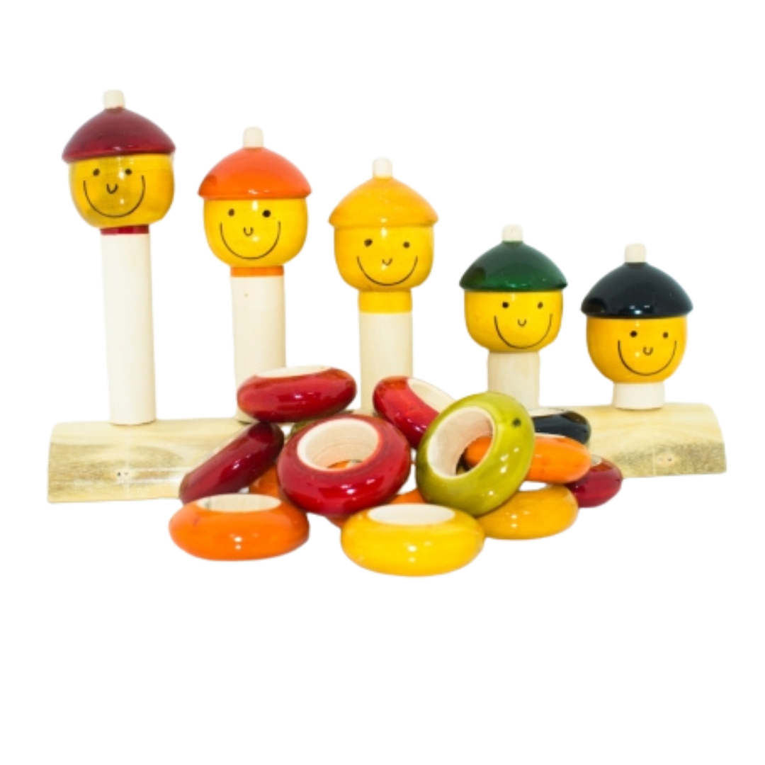 The Channnapatna Wooden Pope Set is a classic example of traditional wooden artistry from the toy town of Channapatna, Karnataka. Each piece is hand-turned on a lathe and polished with natural vegetable dyes, making it safe for children and eco-friendly.
