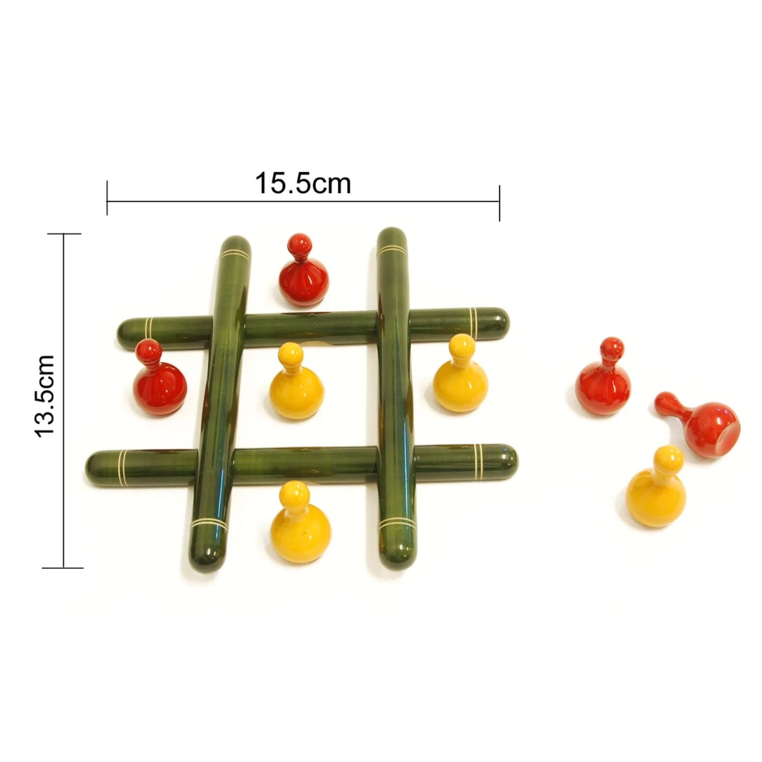 Enjoy endless fun and strategy with this handmade Channnapatna wooden Tic-Tac-Toe game, crafted from eco-friendly wood and colored with natural, non-toxic dyes — perfect for kids and families!